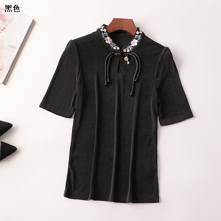 242921 夏T恤 绣花中长款立领五分袖2340 |