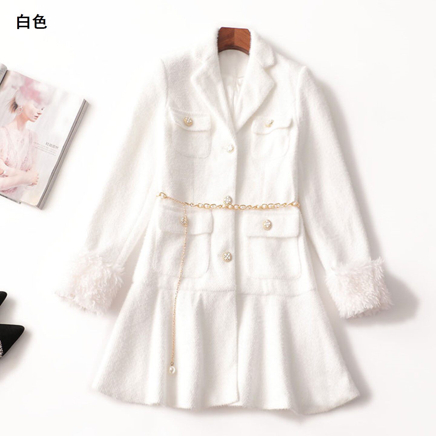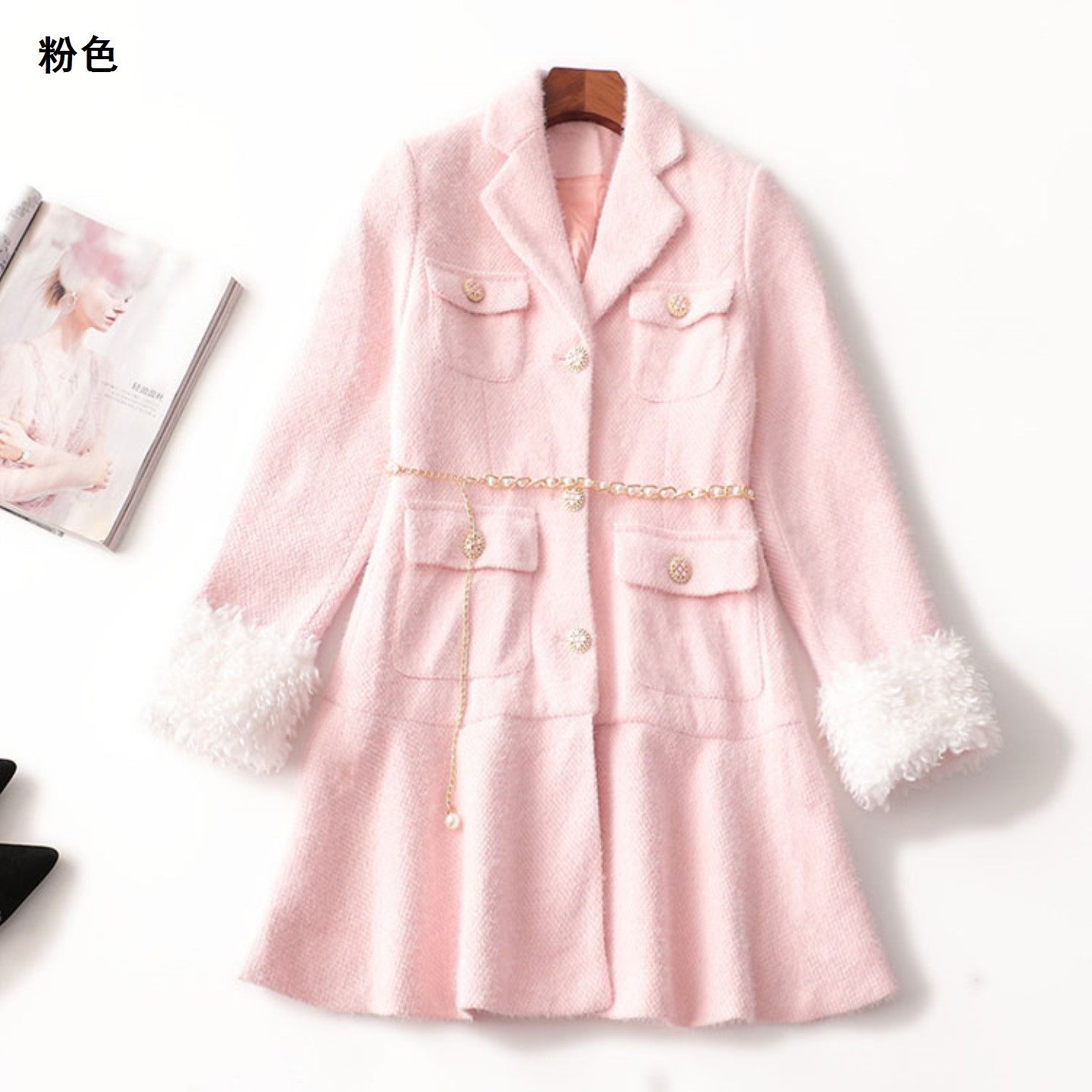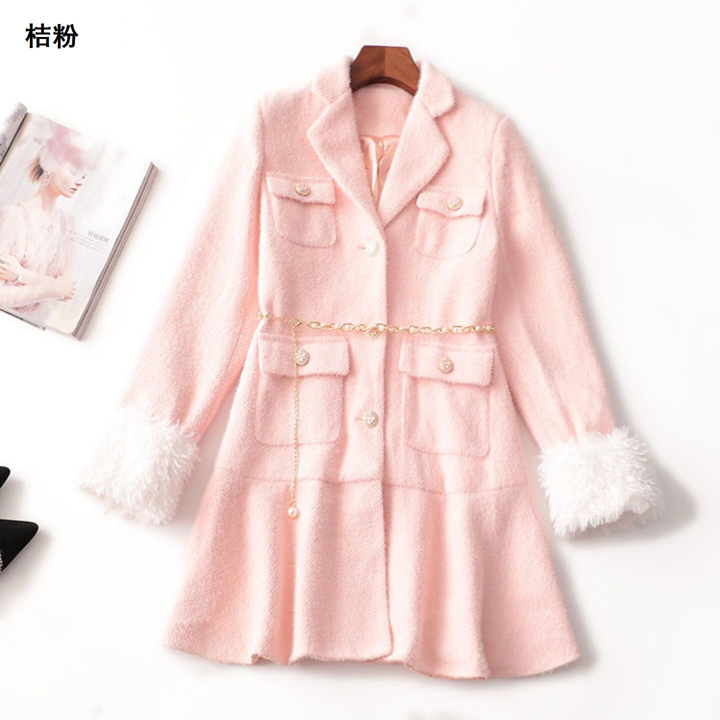 244075 冬毛呢大衣 长款翻领长袖5337 |