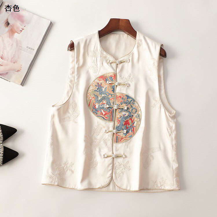 245695 春马夹 盘扣国风绣花中长款圆领无袖2456 |