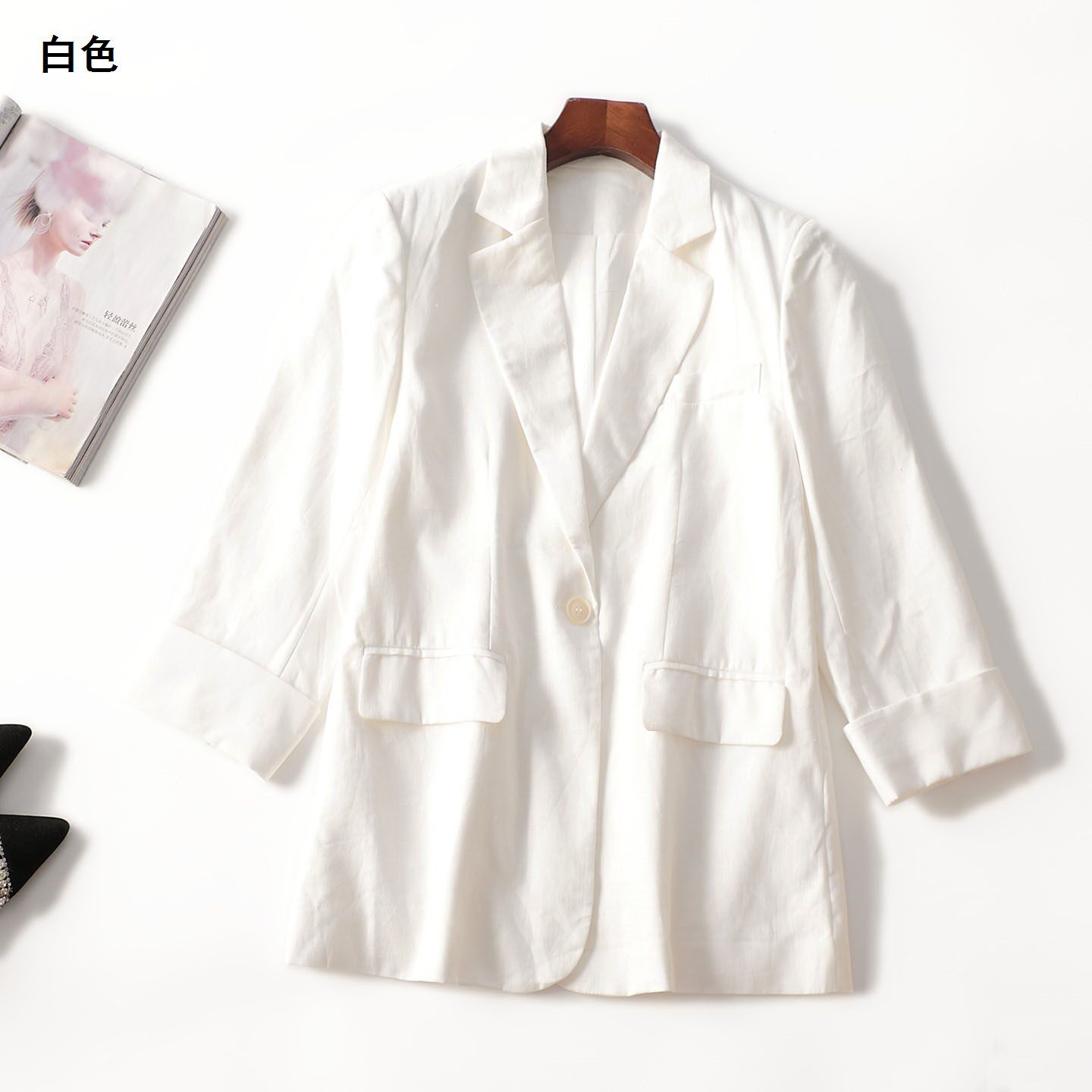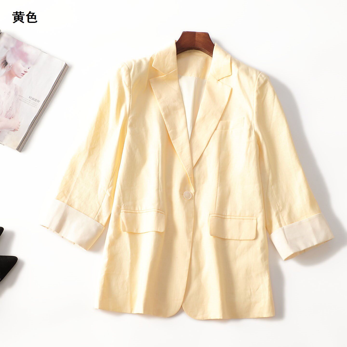 246865 秋西装 麻棉中长款单扣九分袖4133 |