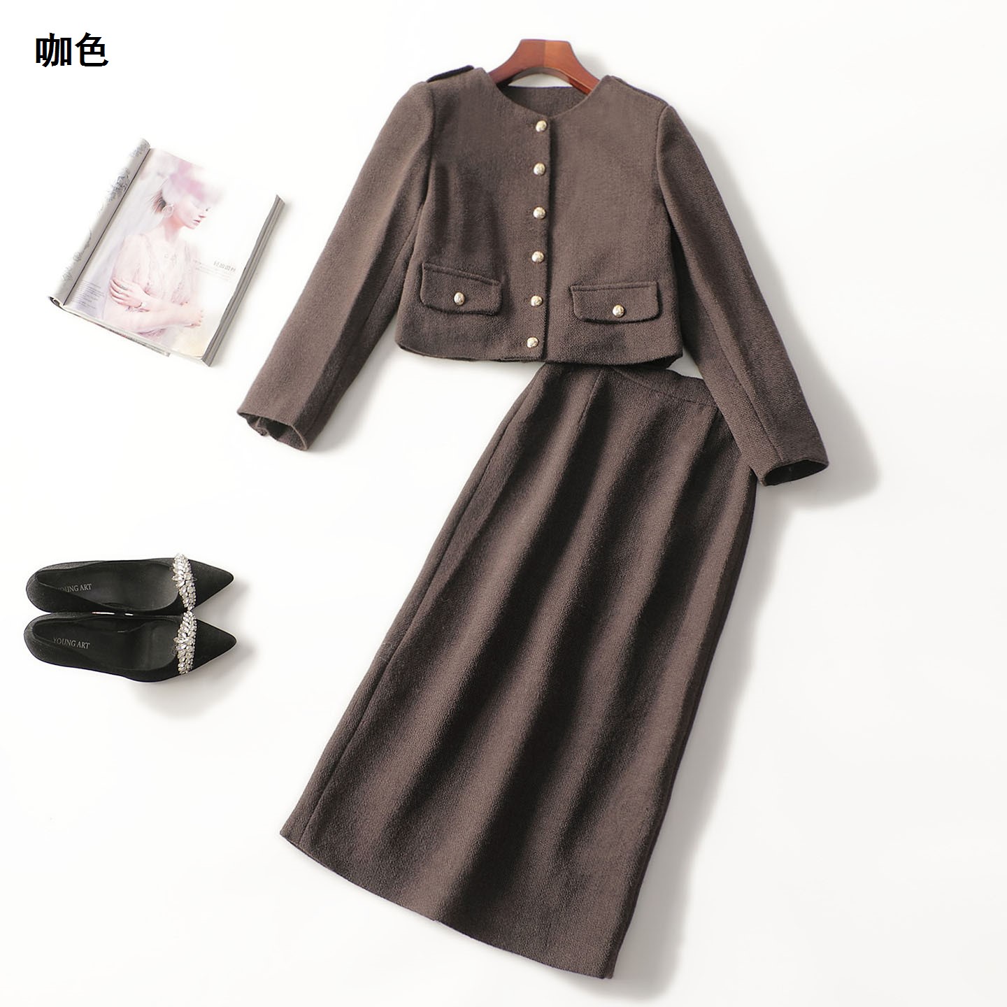 247788 冬外套半身裙套装 羊毛长款单排扣长袖4179 |