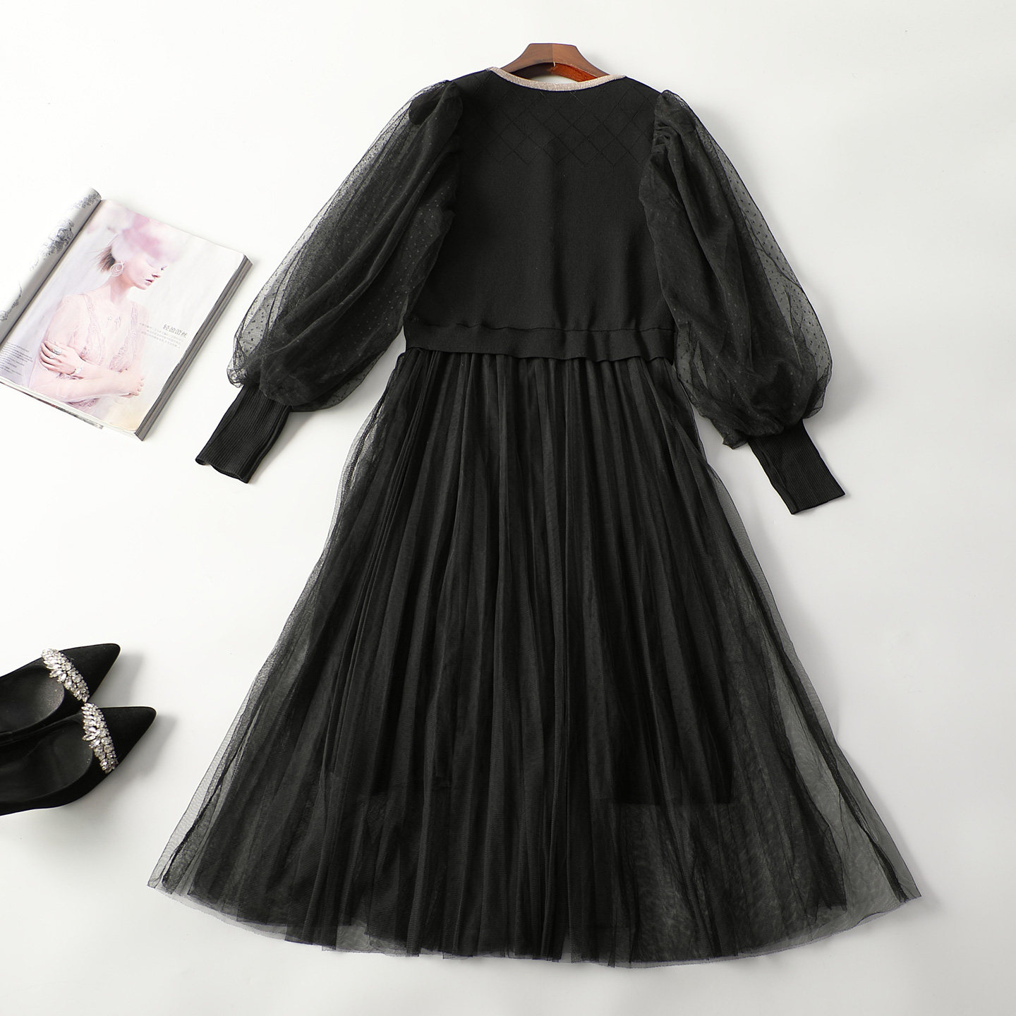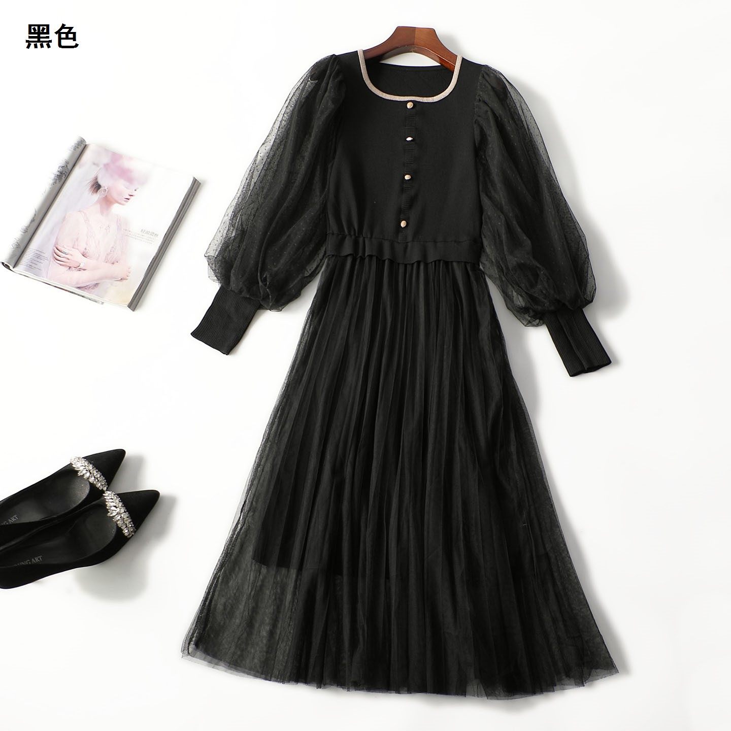 247998 秋连衣裙 羊毛腈纶加长款套头九分袖7020 |