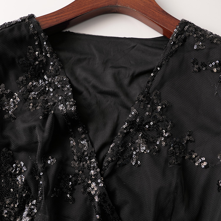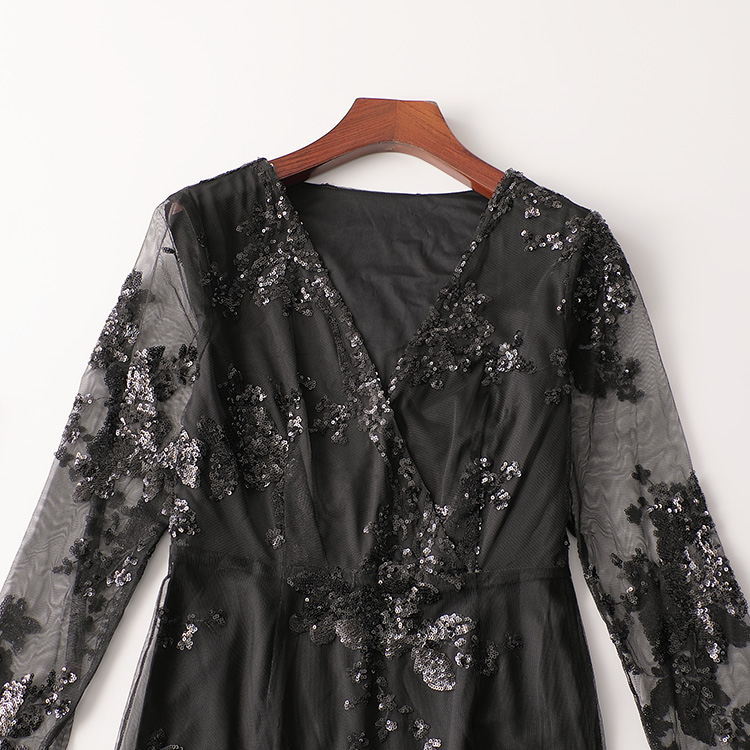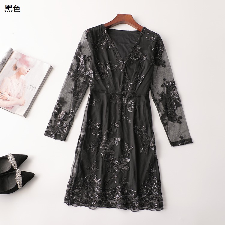 407548 秋连衣裙 亮片长款V领长袖5192 |