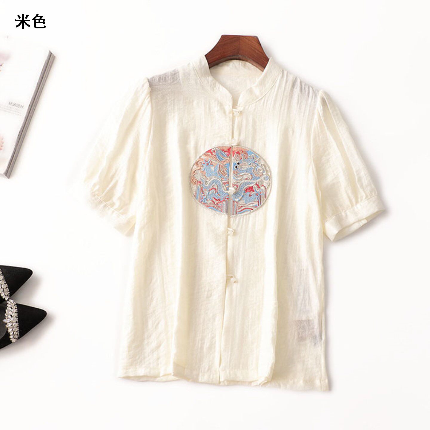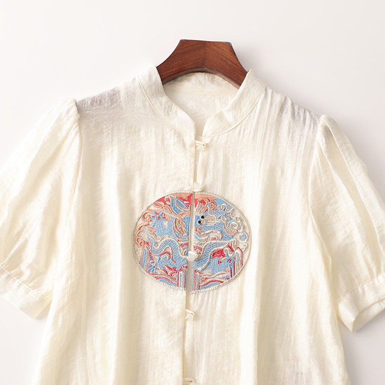 409056 夏衬衫 绣花天丝中长款立领短袖2341 |
