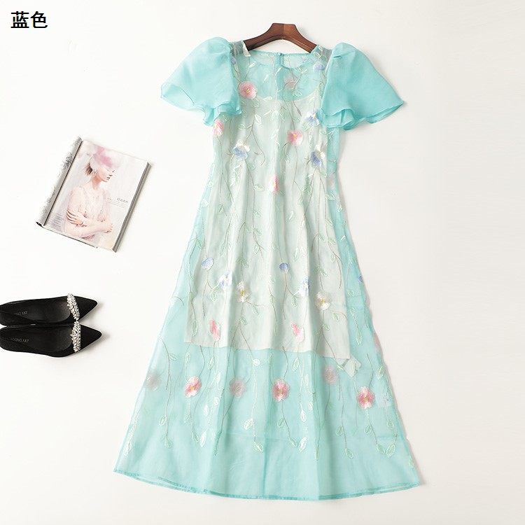 410816 夏连衣裙 欧根纱绣花长款圆领五分袖5444 |