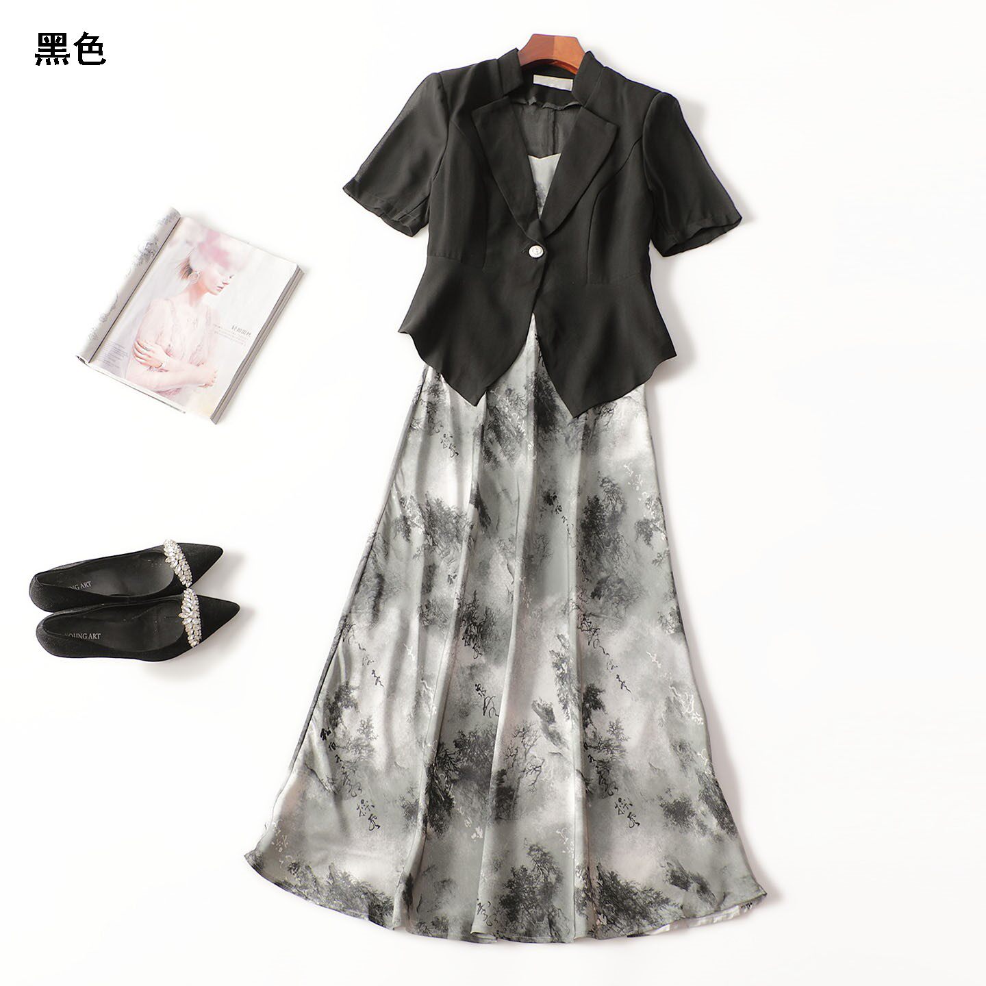 411602 夏外套长裙套装 加长款立领短袖2399 |