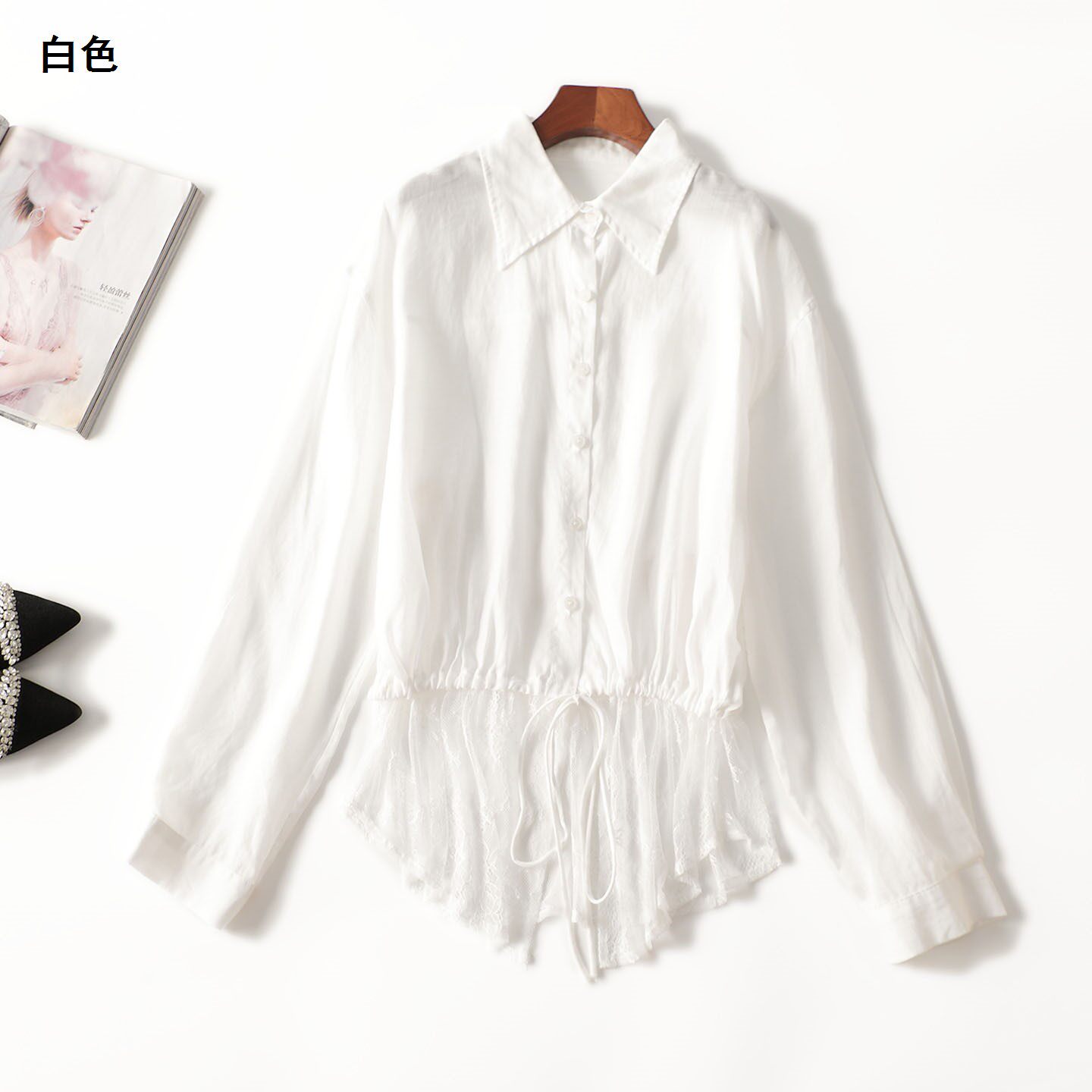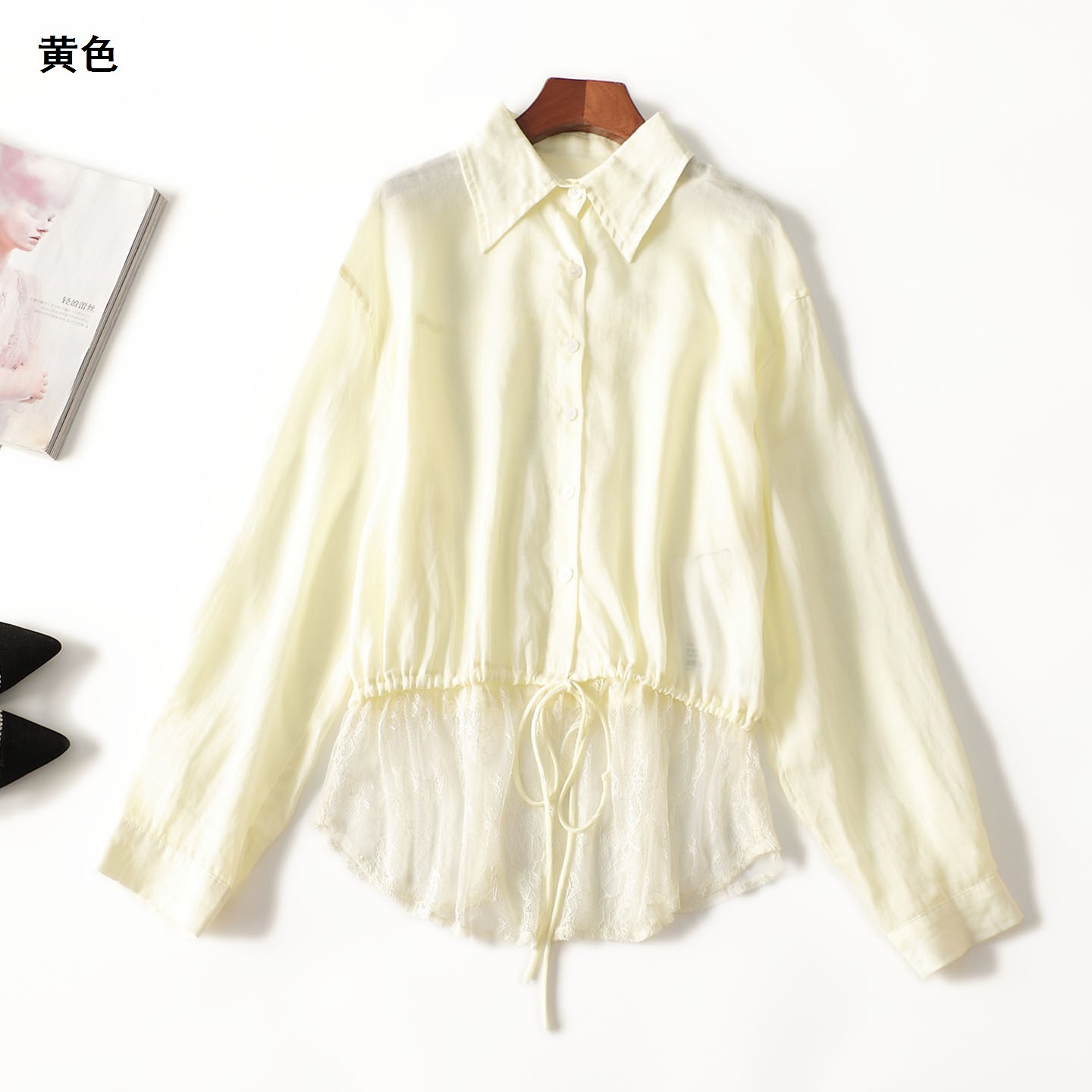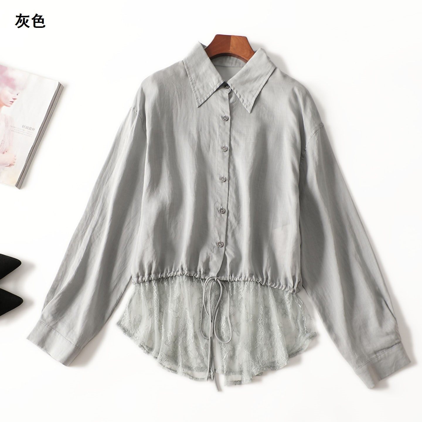 411680 秋衬衫 麻天丝中长款翻领长袖2483 |