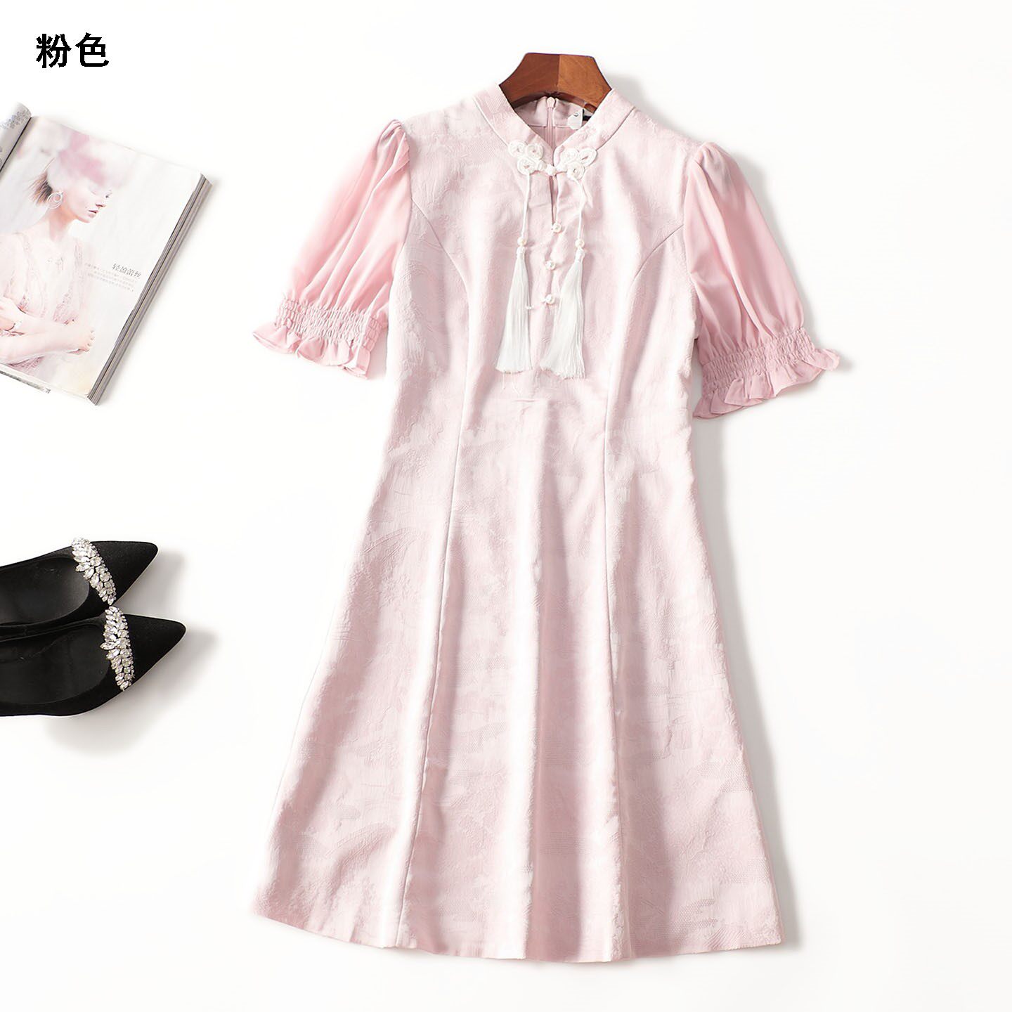 411744 夏连衣裙 长款立领五分袖2408 |