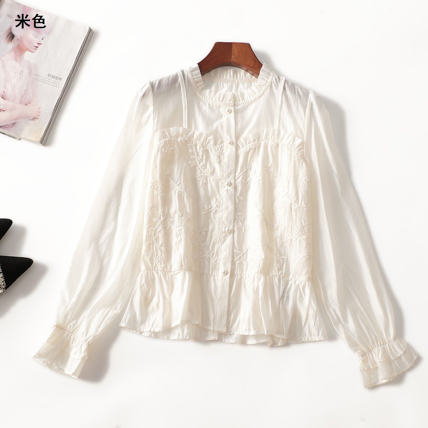 412096 秋衬衫 天丝中长款单排扣长袖4134 |