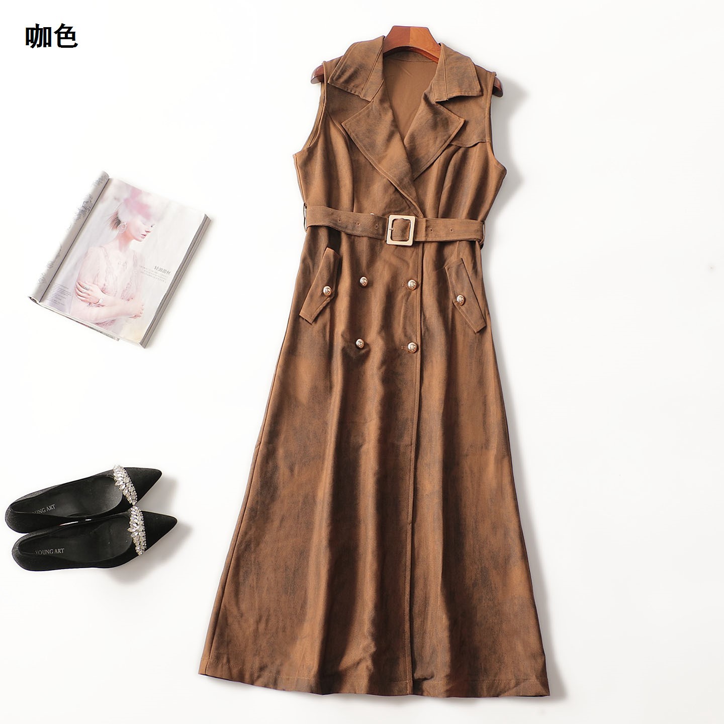412148 秋风衣 棉加长款单排扣无袖2520 |