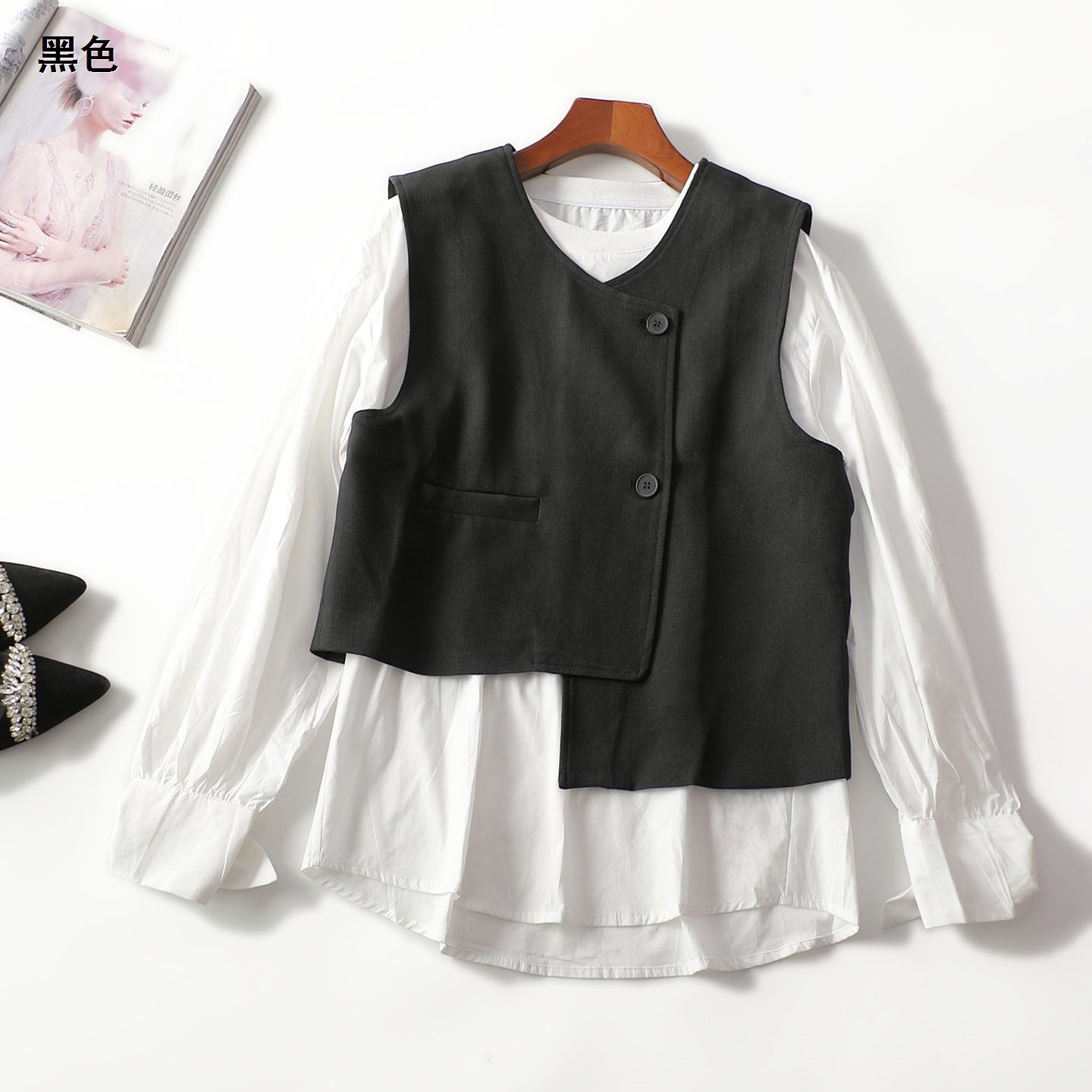413618 春衬衣马夹套装 棉棉中长款单排扣长袖4162 |