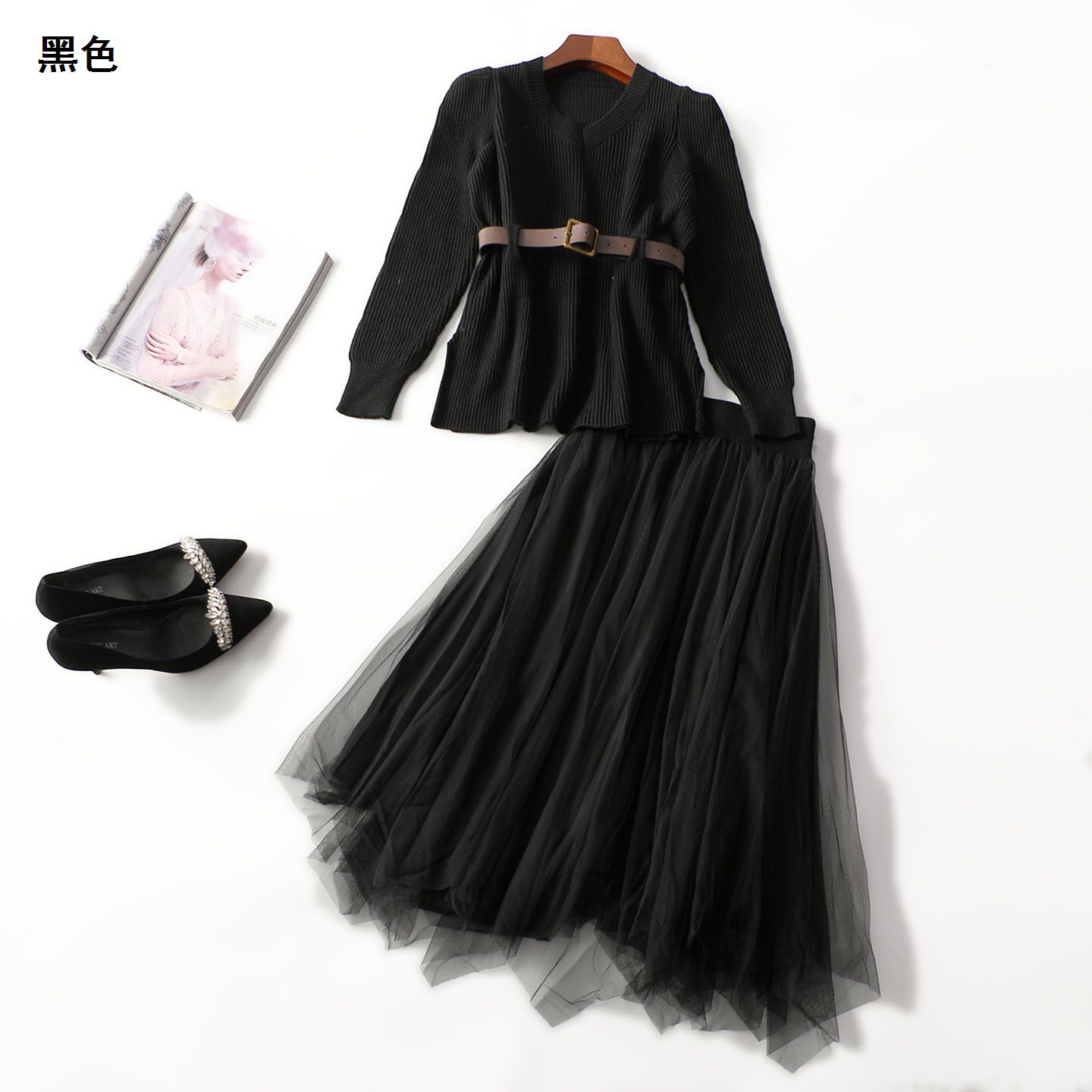 413636 春针织衫半身裙套装 莱赛尔长款套头七分袖0000 |