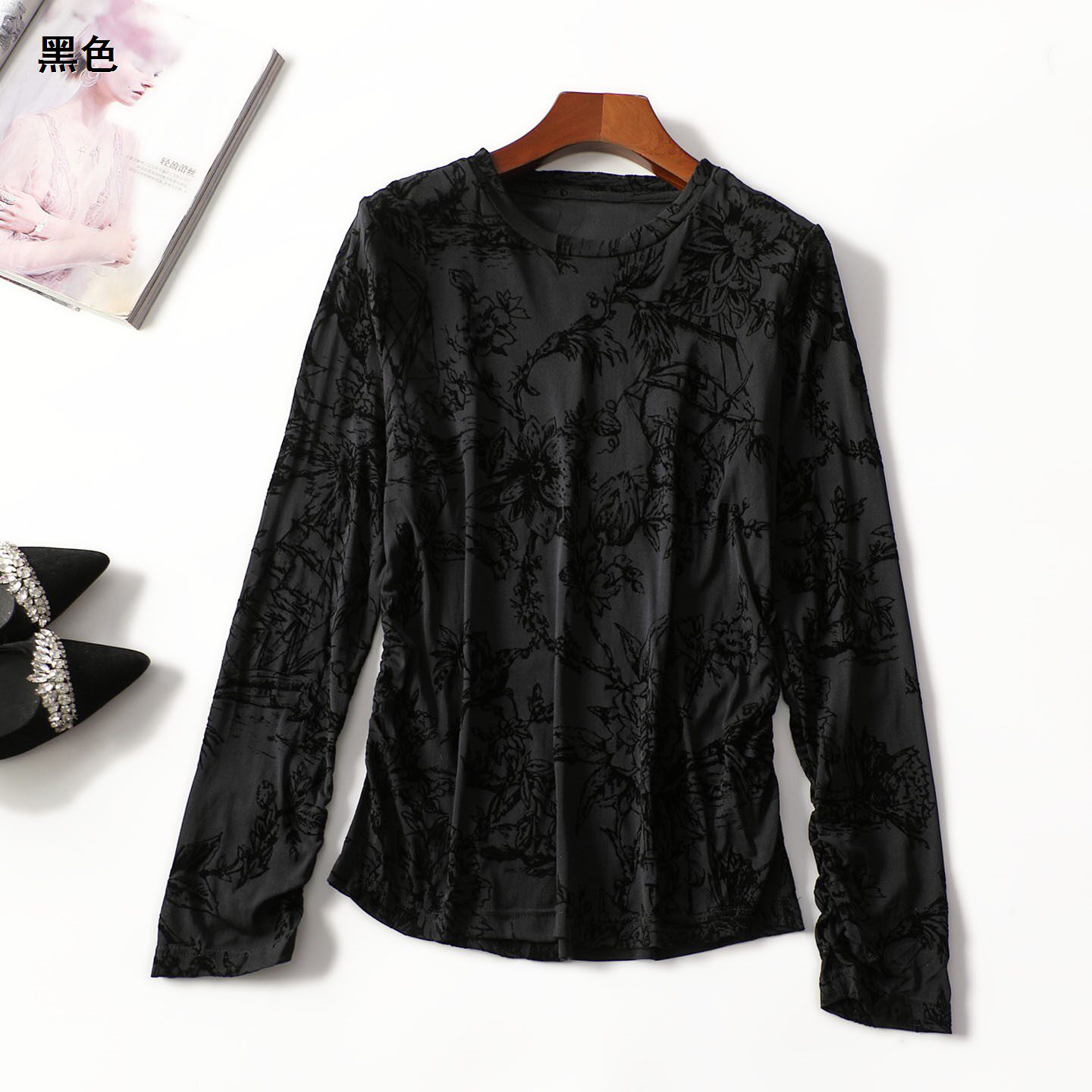 413838 春上衣 锦纶中长款套头长袖7039 |