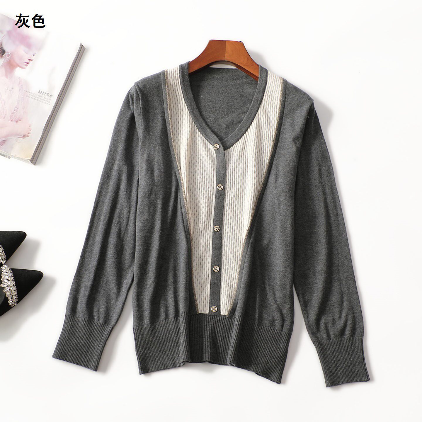 504554 春针织衫 羊毛腈纶中长款套头九分袖0000 |